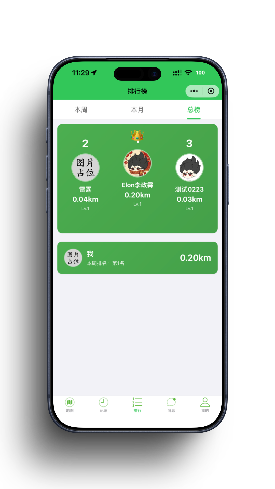 提供周榜、月榜、总榜三个维度的自由切换。排行榜采用了极具质感的玻璃拟态(Glassmorphism)UI 设计,让你的每一次超越,都熠熠生辉。