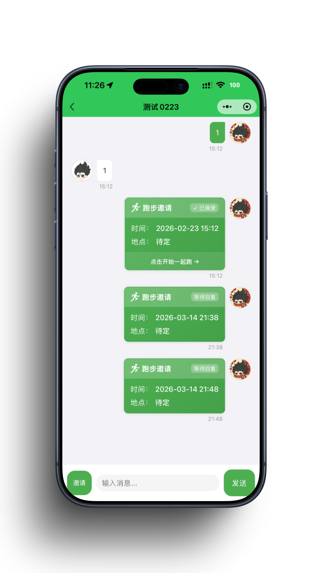 你可以向好友发送一张优雅的「跑步邀请卡」,卡片内嵌了结构化的约定时间、集合地点和目标距离。对方点击即可处理邀请状态,让线下运动社交闭环无比流畅。